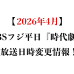 2026年4月よりBSフジ(ch181)にて放映中の一部時代劇作品の放映日時が変更されることになりました。 本編放映中にテロップが入っ...
